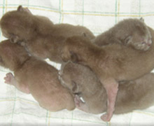 | Die Bilder auf dieser Seite zeigen das Entwicklungsstadium der Kitten am dritten und vierten Tag nach der Geburt. |